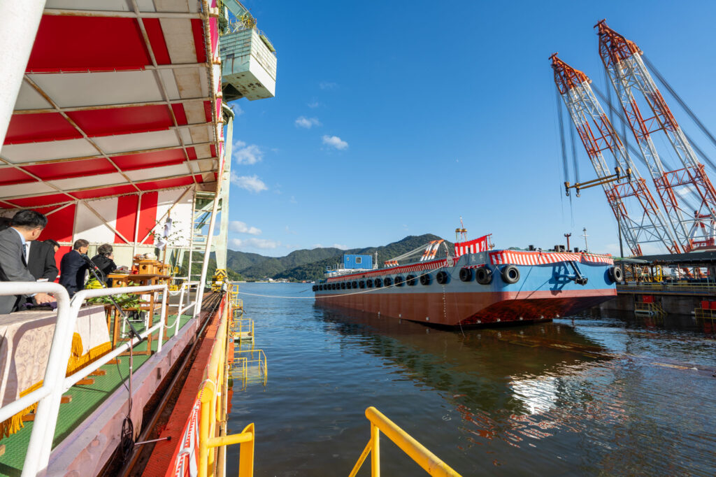 2025年10月29日に一本松物流株式会社殿向け非自航ボックス型バージの命名・進水式典を海洋船台にて実施しました。